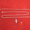 A STAMPED 9CT YELLOW GOLD, DIAMOND SET CROSS PENDANT & CHAIN NECKLET WITH 1 ROUND BRILLIANT CUT DIAMOND OF 0.01CT APPROX. & CHAIN IS OF OPEN CABLE LINK & OF 61CMS LONG INCLUDING BOLT RING. ITEM WEIGHS 7.4GRAMS. VALUE $295 (KFB/06)