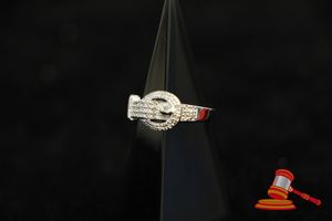 A STAMPED SILVER 29 x DIAMOND 'BUCKLE' RING 3.3GRAMS VALUE $50 (ITEM#0038H)