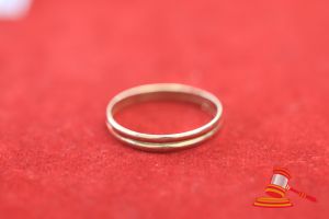 A TESTED YELLOW GOLD, BAND RING WITH A CENTRAL RIDGE & WEIGHS 2.2GRAMS. VALUE $90 (KFB/09)