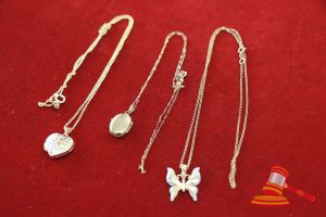 1 x YELLOW METAL BUTTERFLY ON YELLOW METAL CHAIN; 1 x YELLOW METAL HEART SHAPED LOCKET; 1 x YELLOW METAL OVAL LOCKET YELLOW METAL CHAIN
