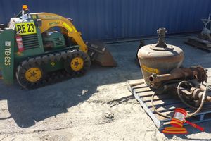 KANGA TB 825 LOADER, DEISEL, S/N 1051204, 470HRS, INCLUDES THE FOLLOWING ATTACHMENTS, GENERAL PURPOSE LOADER BUCKET, FORKS, CONCRETE MIXER, 2 X 8" ORGA DRILLS AND HYDRAULIC DRIVE MOTOR