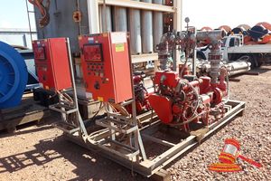SKID MOUNTED FIRE PUMP SET, INCLUDES 2 X ALTON 4 CYL DIESEL ENGINES, 2 X ALLIED SUPPLY PUMPS (MOD#65/26) 1 X ALLIED PRESSURE PUMP AND 220HP SINGLE PHASE INDUCTION MOTOR. LOCATED IN KARRATHA LIA AREA. INSPECTION BY APPOINTMENT