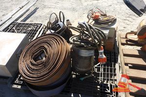 2 X GRUNDFOS SUBMERSIBLE PUMPS ECEX KEM 06.0028X, TYPE SEG.4026 EX.250, 2 X APPROX 20M LENGTHS OF 100MM LAYFLAT HOSE AND COUPLINGS AND AUTO FLOAT LEVEL SWITCH