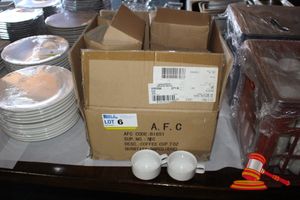 BOX OF WHITE CERAMIC COFFEE/TEA MUGS