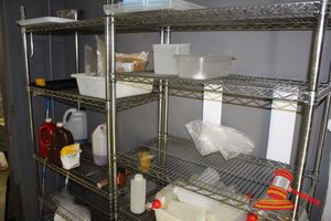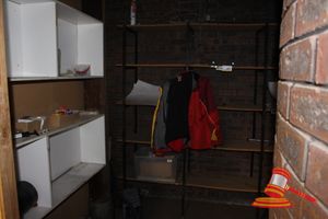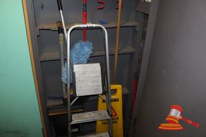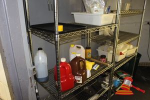 STORAGE ROOM CONTAINING, 5 TIER SHELVES, CARLTON JACKET, VACUUM CLEANER & OTHER MISCELLANEOUS ITEMS