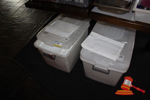 2 x WHITE TUBS OF WHITE TABLE CLOTHS