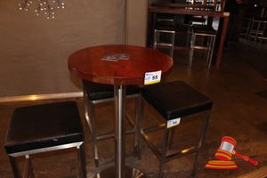 ROUND TIMBER BAR TABLE WITH METAL BASE, 600mm DIAMETER