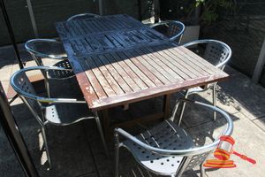 7 PIECE OUTDOOR DINING SET WITH ADJUSTABLE TABLE, 2000mm L x 1000mm W TO 1500mm L x 1000mm W