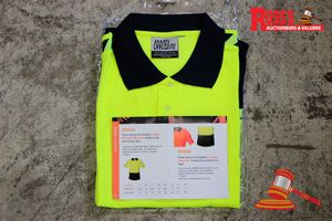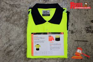 10 x SHORT SLEEVE HI-VISABILITY COOLDRY POLYESTER SAFETY POLO WITH WARNING TAPE. LIME/BLUE. SIZE EXTRA LARGE