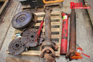 PALLET CONTAINING LARGE MOUNTING BRACKETS, FITTINGS, BEAMS AND PVC PIPE (129862-284)