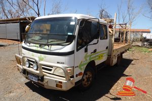 2008 HINO 300 716 3 TONNE 4 X 2 CREW CAB TRAY TOP. REGISTRATION 1DSN705 (EXPIRES 14.3.20), 181,635 KM SHOWING, VIN -JHFMU11H900003131. AUTO, DIESEL, A/C, 3.5M STEEL TRAY WITH DROP DOWN SIDES AND CARRY RACK, ALI BULL BAR, SPOTLIGHTS, TWO WAY, TOW BALL, UNDER TRAY TOOL BOX, SEAT COVERS. LAST SERVICE 179,283 KM. INSPECTION NOTES: STARTS AND RUNS, NORMAL WEAR FOR AGE, MINOR PAINT CHIPS, COMPANY DECAL (STRIPES) ON CAB, DRIVES SIDE WINDOW TO BE REPLACED BY SELLER. TEST DRIVE AVAILABLE DURING ALLOCATED INSPECTION PERIODS. (DR#)