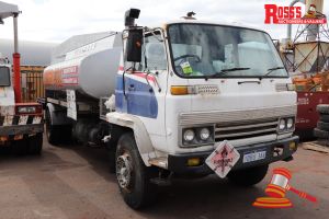 1985 ISUZU TANK TK, WHITE, 4x2, MANUAL, P/S, A/C, DIESEL, REG#1DBU344 LIC: 7.5.20, ODO# 588,478 KMS SHOWING ON CLOCK, VIN# JALFVR116F3519109, ENG# 6BD1412420, 10,000 LITRE KEROSENE TANK 4 COMPARTMENTS, ELECTRIC REWIND HOSE, METER, HYDRAULIC DRIVEN PUMP, SPARE TYRE, STORAGE TRAY FRONT & REAR, KEY#173 (W