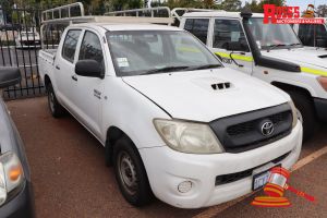 TOYOTA HILUX DUAL CAB UTILITY, 150 SERIES, 2WD, COMP: 11/2008, VIN: MR0EZ12G004006239, REGISTRATION: 1CYZ559, EXPIRED: 15/12/2019, ODOMETER: 308,010KM, COLOUR: WHITE, TRANSMISSION: MANUAL, 5 SPEED, 5 SEATER, FUEL TYPE: DIESEL, ENGINE: 4 CYL 3.0L, RIM TYPE: ALLOY, TYRE SIZE: 205/70R15C, FABRIC SEATS, AIR CONDITIONING, TOW BAR, TOW BALL, FULL LENGTH ALUMINIUM ROOF RACKS, KEY#96 (W8911)
