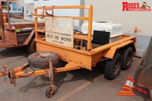 1993 POLMAC 8 x 5 BOXTOP TRAILER, YELLOW, TANDEM, REG#8UE117 LIC:31.1.21, VIN#6A3T20P2PLMC23396, FITTED WITH "GARDEN" DIESEL & PRESSURE PUMP (CONDITION UNKNOWN) INCLUDING FIBREGLASS TANK & OXY BOTTLE RETAINERS (NO BRAKES FITTED) TL1503, (W8650)