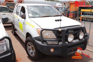2008 TOYOTA HILUX 150 SERIES DUAL CAB, WHITE, 4x4, MANUAL, P/S, A/C, D4D (REG#UNLIC) ODO#229,585 KMS SHOWING ON CLOCK, VIN# MR0FZ22G801167529, ENG# 1KD7641430, BULLBAR, 2 x TRAY MOUNTED TOOLBOXES, SPARE TYRE, TOWBAR (NO HITCH) (NO GEAR STICK KNOB, DRIVER FRONT FENDER DAMAGE, PARTS OF DASH CONSOLE MISSING) FL#03R206, S44#RITM3586238, DR#64706, KEY#27 (W8938)