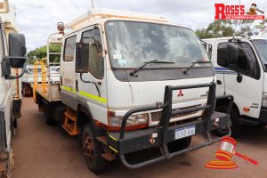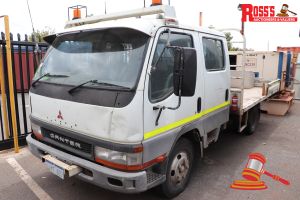 2007 MITSUBISHI CANTER DUAL CAB TRAY TOP, WHITE, 4x4, MANUAL, P/S, A/C, 4 CYL DIESEL, REG#1CVQ046 LIC:11.03.20, ODO#220,000kms SHOWING, VIN#JLFFG649E0KJ41015, MODEL# G649EWSRFAA, ENG#4D34L45439, CABLE WINCH, TWO WAY RADIO, LIGHTS SIDE STEPS, FIRE EXTINGUISHER (NEW BATTERIES) ROPS, WORKLIGHTS, BULLBAR, TRAY STEPS, 2 x SPARE TYRES. SERVICE MANUAL, REAR CAB IS CUSTOMISED FOR WINCH CONTROLLER, FL# 23, KEY#199 (W8906)