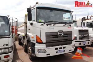 2014 HINO 3241/700 TIPPING TRUCK, WHITE, 8x4, MANUAL, P/S, A/C, DIESEL, REG#1EMU854 LIC: 29.4.20, ODO# 535,226 KMS SHOWING ON CLOCK, VIN# JHEFY1EUK00010936, ENG# E13CUN11356, SLIDING POWER TARP MATERIAL COVER (SEVERAL STONE CHIPS ON WINDSCREEN) KEY#134 (W8985)