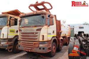 2010 SCANIA R420 WATER TRUCK, WHITE, 8x4, AUTO, P/S, A/C, DIESEL (REG#UNLIC) ODO# 288,661 KMS LAST KNOWN, VIN# XLER8X40085223413, ENG# 6413093, LED SPOTLIGHTS, SUN VISOR WITH BUILT IN LIGHTS, WORK LIGHTS BEACON, ROPS, SAFETY RAILS, WATER CANNON, SOUTHERN CROSS PUMP, DRIBBLE BAR, HOSES & REELS, ASSOCIATED PIPING (TAIL SHAFT NOT CONNECTED, PARTS OF DASH REMOVED, NO BATTERY), FL#04R45, S44#RITM2679728, DR#64376, KEY#126 (W9000)