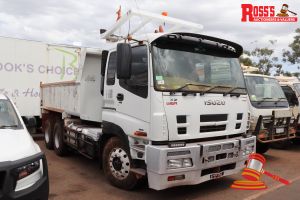2008 ISUZU CX2 GIGA TIPPER TRUCK, WHITE, 6x4, MANUAL, P/S, A/C, DIESEL (REG#UNLIC) ODO# 113,262 KMS SHOWING ON CLOCK, VIN# JALCXZ52L87000032, ENG# 6WG1408172, REAR TIPPER, BULLBAR, LED SPOTLIGHTS, SUNVISOR, ROPS, BEACON, WORKLIGHTS, RING FEEDER HITCH, UNDER BODY WATER TANK (NO REAR TAILGATE, PART OF DASH LOOSE) KEY#146 (W8956)