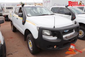 2014 FORD RANGER DUAL CAB, WHITE, 4x4, AUTO, P/S, A/C, DIESEL (REG#UNLIC) ODO#265,388 KMS SHOWING ON CLOCK, VIN# MNAUMEF50EW299516, ENG# P5AT1121469, BULLBAR, TRAY MOUNTED TOOLBOX, LIGHTBAR IN REAR, WHEEL CHOCK, TOWBAR (STEERING COLUMN COVER REMOVED, NO BATTERY SUPPLIED) FL# 03H7567, S44#RITM3485034, DR#64604, KEY#60 (W8958)