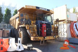 2008 CATERPILLAR 775F DUMP TRUCK, YELLOW, 4x2, AUTO, P/S, A/C, DIESEL HP287 (REG#UNLIC) 50,109 HOURS SHOWING ON CLOCK, VIN# CAT0775FJDLS00576, REVERSING CAMERA, FIRE SUPPRESSION SYSTEM, FL# T144, KEY#185 (W8981)