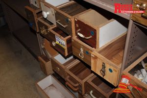 QTY OF WOODEN M/T STORAGE DRAWERS APPROX 45