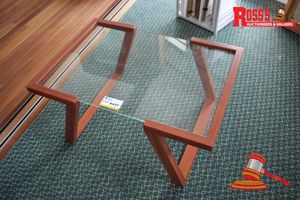 GLASS/JARRAH COFFEE TABLE 965X690X450H