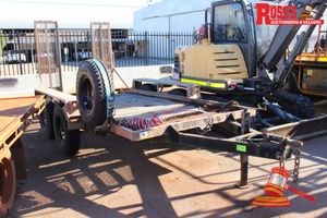 1988 MATRIK PLANT TRAILER, GALVANISED, DUAL AXLES, REG# 7TL820 LIC: 31.12.20, VIN# 89911, TARE:1500, AGG:4500, RING HITCH, BEAVER TAIL RAMPS, SPARE TYRE, AIR BRAKES (W9270) HOLE IN TRAILER MESH