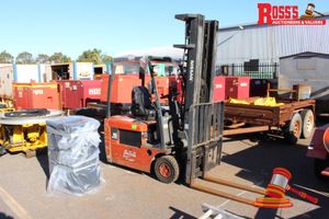 NISSAN N01L15HQ FORKLIFT, ORANGE, AUTO, P/S, ELECTRIC, ODO# 3766 HRS, S/N: 720295, TARE WEIGHT: 3432kg, ELECTRIC FORKLIFT 1.5 TN, 1 x BATTERY CHARGER UNIT - TYPE 3TBC 18-100-1R, CAPACITY 715 AB, 36 VOLT 18 CELLS, S/N: 930831, 415 VOLT 50HZ 15A INPUT, POWER CORD & PLUG, 3 x WHEEL UNIT, KEY#16