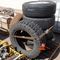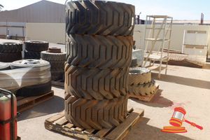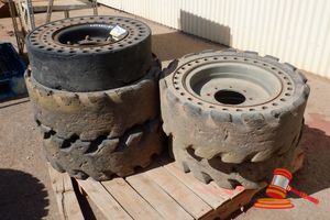 4 X EWP TYRES ON RIMS, 1 X FORKLIFT TYRE ON RIM