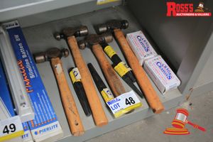 LOT CONT. 4 X BARREL DRIFTS (3 X 25MM, 1 X 16MM), 4 X BULL PEIN HAMMERS AND 2 X BOXES OF LUMBER CRAYONS
