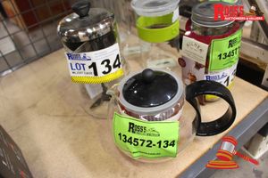 Glassware, Crockery, Cutlery, Utensils, Kitchenware, Jars, Coffee Pots, Trays, Servery’s, Gas Cook Tops, Lamps, Vases, Toasters, Wine Glasses, Crock Pot, Candles, Casserole Dishes.