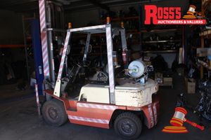 4 Tonne Heavy Duty Work Safe Approved 3 Phase Car Hoist, 2.5 Tonne Nissan LPG Forklift with High Reach Mast, Work Bench, 1980 Toyota Dyna Beavertail Tow Truck, Heavy Duty Pallet Racking, Engine Hoist, Engine Stand, and more.