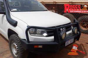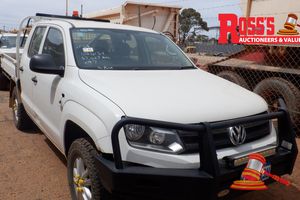 2017 VW AMAROK TRAY BACK, WHITE 4X4 MANUAL, P/S, A/C, DIESEL, BULLBAR, LEDLIGHT BAR, ROPS, TOW HITCH, BEACON, (DRIVERS DOOR HAS A PANEL TEAR) REG NO-KBC843N (LIC 16/2/2021) ODO - 47,467KMS SHOWING, ENG#G13810616067, VIN# WV1ZZZ2HZHA011696 (A/NO-LV40) (DR#5414) (** CONDITION REPORT: POOR DRIVERS DOOR PANEL, REST OF VEHICLE PANELS ARE GOOD, FAIR PAINT, GOOD GLASS, GOOD UPHOLSTERY, FLOOR AND DASH- FAIR TYRES - FAIR**)