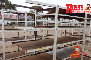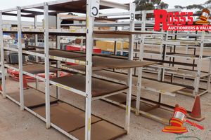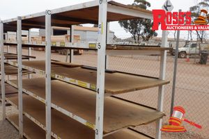 2 X 5 TIER STEEL SHELF CUT IN HALF 860mm W, 2020mm H, 3530mm L, 3700mm L, SECOND SECTION HAS 2 X EXTRA TIERS