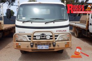 2009 HINO STEELACE 300 TRAY TOP WHITE, 4X2, MANUAL, P/S, A/C, 4 CYLINDER DIESEL, TOWBAR, BULLBAR, SPOTLIGHTS, GATES, CARRYBAR, ELECTRIC WINDOWS, SPARE WHEEL, ORANGE BEACON, 6 X STUD RIMS, REG NO - 1EUH998 (LIC 7/4/21) ODO - 612,521KMS SHOWING, ENGINE - N04CTV16437, VIN - JHFUU11H80K001620 (DR#5534)