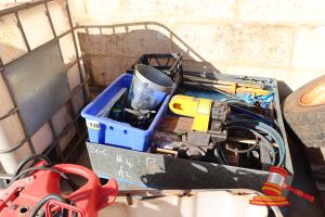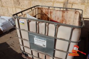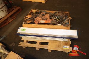 IBC CONTAINING, PUSH BEHIND SWEEPER & ASSORTED LIFTING CHAINS & TIEFOR