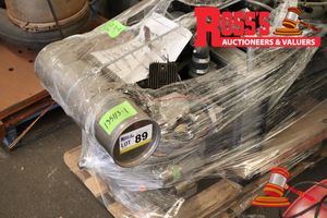 1 x PALLET CONTAINING WESTERBEKE DIESEL ENGINE SPECS & CONDITION UNKNOWN, 2 x REDUCTION BOX, BEAM TROLLEY & CHAIN BLOCK