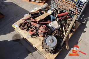 PALLET OF DOG BINDERS, CHAIN BLOCK, COME-A-LONG, OXY LEAD & ALLEN KEYS