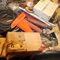 CRATE CONTAINING ASSORTED ITEMS, SOME INCLUDE; TRIPOD, RATCHET CHAIN BINDER, ASSORTED THREADED ROD 7 CHAIN, PENCIL GRINDER & BAND IT TOOL