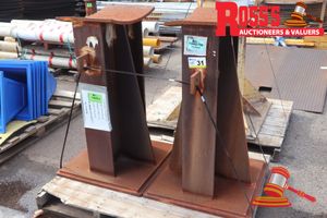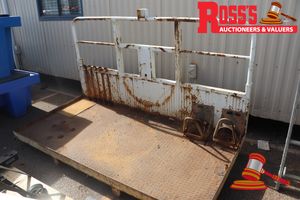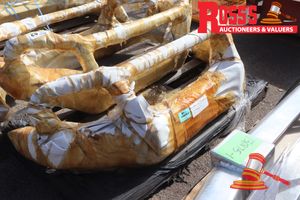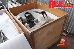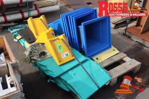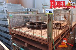 STEEL TRANSPORT CAGES, TIMBER TRANSPORT GLUTS, STEEL FRAMING, PALLET BUNDS, ROLLS OF WIRE ROPE, CONCRETE SOAK WELLS, LADDERS, ALUMINIUM SCAFFOLDING TOWERS, PUMPS, PLATFORM SCALES, STAIRWELL. TYRES: 225/ 70 R17, 225/ 9.5 R16, MOTORBIKE VR085614, 300-17