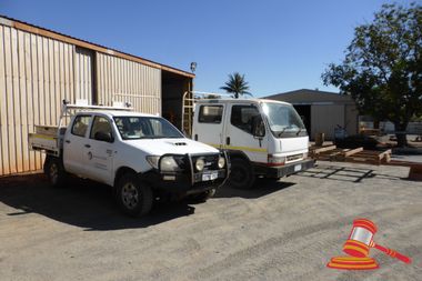 2009 Toyota Hilux SR 4x4 Dual Cab Tray Top, 2004 Mitsubishi Canter Tray Top, 2011 Custom 8m Flat Top Trailer, Yale 5T & 2T Forklifts, Guillotine, Press Brake, Punch, Workshop Equipment inc Welders/Pedistool Drills/Pipe Benders/Air Compressors/Cut Off Saws/Hand Tools, Steel Work Benches, Steel Supplies, HD Steel Racks, 20’ & 40’ Sea Containers, Office Equipment And Sundry Items