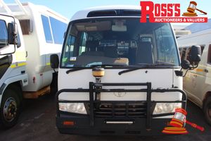 - 2012 TOYOTA COASTER BUS, WHITE, 4x2, MANUAL, P/S, A/C, DIESEL (REG#UNLIC) ODO# 139,836 KMS SHOWING ON CLOCK