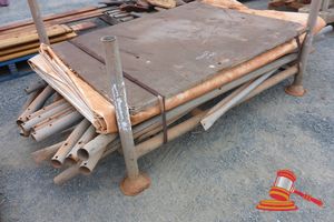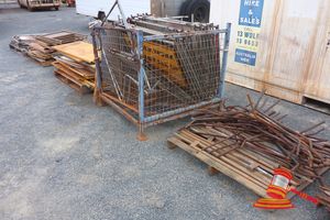 STEEL CAGE CONTAINING APPROX 20 'A' FRAME BARRIER SUPPORT LEGS