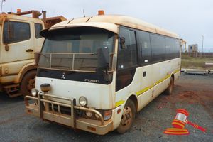 7/2012 MITSUBISHI ROSA BE64 COASTER 22 SEATER BUS, WHITE, 4X2, MANUAL, P/S, A/C, DIESEL, ALLOY BULLBAR, SPOTLIGHTS, WORKLIGHTS, REAR BUMP BAR, TOW ASSEMBLY, REG NO - (UNLIC) ODO - NOT SIGHTED (**NON RUNNER, UNABLE TO JUMP START, COLLISION DAMAGE TO DRIVERS SIDE LOWER SIDE PANEL**) ENGINE - 4M50D75534, VIN - JLFBE64DG0RG10144 (FL#05H1059) (S44#RITM6172353) (DR#65309) (KS#) (**CONDITION REPORT - PANEL, UPHOLSTERY, FLOOR, DASH & TYRES - FAIR, PAINT - POOR/FAIR, GLASS - FAIR/GOOD, OVERALL RATING - POOR/FAIR**)