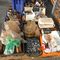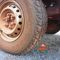 STEEL TUB CONTAINING VARIOUS ITEMS INCLUDING ALLOY WHEEL CHOCKS CAHINS FIRE EXTINGUISHER BRACKETS AND MORE