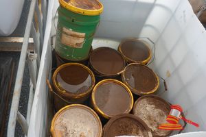 STEEL CAGE CONTAINING QTY OF USED BINDERS