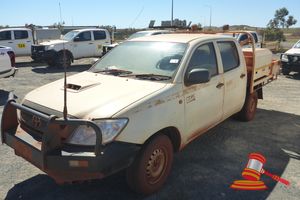 2/2011 TOYOTA HILUX 150 SER DUAL CAB TRAY BACK, WHITE, 4X2, MANUAL, P/S, A/C, 3LTR TURBO DIESEL, BULLBAR, WORKLIGHTS, TOW ASSEMBLY, TRAY MOUNTED, TOOL CHEST, REG NO - (UNLIC) ODO - 222,356KMS SHOWING, ENGINE - 1KD5288295, VIN - MR0EZ12G204154330 (FL#02H5272) (S44#RITM5263104) (DR#65063) (KS#3533)