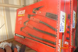 VARIOUS TOOLING INCLUDING 3 X TROLLEY JACKS, PIPE BENDER AND RETRACTABLE HOSE REEL