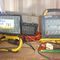 PLASTIC TUB CONTAINING HBC RADIOMATIC OVERHEAD CRANE CONTROLLER & 2 X SOLAR TECH TOUCH SCREENS